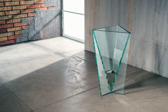 Il porta ombrelli DROP ? un elegante e raffinato oggetto d’arredo che stupir? chiunque arriver? a casa vostra. Realizzato con 3 lastre di vetro trasparente incollate fra di loro in maniera perfetta, come un prisma. Il pratico salvagoccia in metallo cromato protegger? il vostro prezioso oggetto dai graffi e dall’umidit?. La sua trasparenza esalta ogni tipologia di pavimento, parquet o tappeto sul quale viene posizionato. Le sue forme armoniose si sposano con gli attuali canoni del design ?strizzando? un?occhio anche agli ambienti vintage o urban-eco.