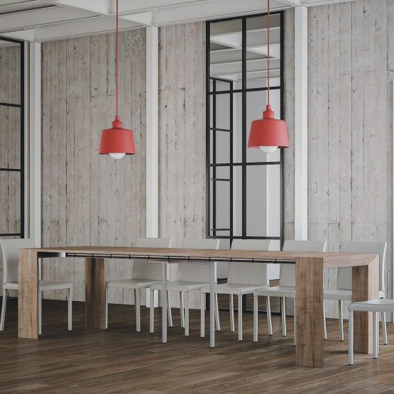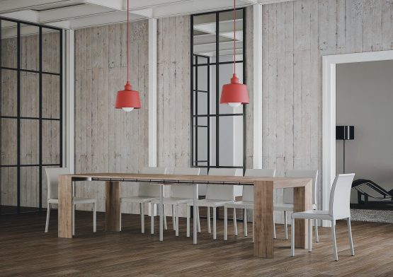 La Consolle Ginevra si trasforma in semplici mosse in un tavolo di grandi dimensioni capace di ospitare fino a 14 personeLa Consolle Ginevra รจ un prodotto made in Italy.