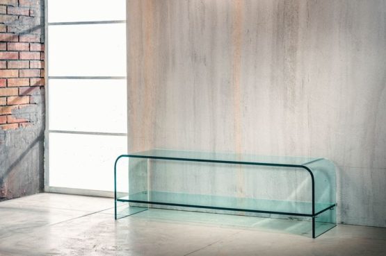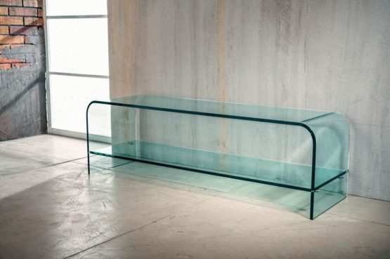 Un classico dei complementi d’arredo in vetro curvato, il porta TV NET un evergreen del design, un must per un arredamento in stile moderno, classico o contemporaneo. I televisori da mastodontici e pesanti scatoloni sono diventati ultrasottili e di altissimo design. Il porta TV in vetro resta sempre lo stesso, elegante e funzionale. Il ripiano permette di poter tenere sempre tutto al giusto posto. La sua trasparenza esalta ogni tipologia di pavimento, parquet o tappeto sul quale viene posizionato. Le sue curve morbide ed armoniose si sposano con gli attuali canoni del design strizzando un occhio anche agli ambienti vintage o urban-eco.