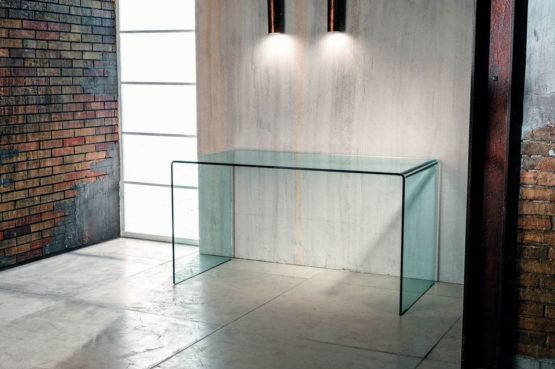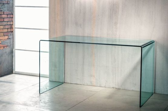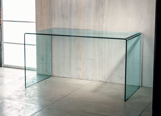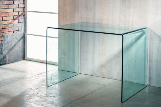 La scrivania in vetro curvato SCRIBA un elegante soluzione per creare il vostro angolo ufficio in casa. Disponibile in 4 larghezze, SCRIBA un classico dei complementi d’arredo in vetro curvato, il ponte un evergreen del design, un must per un arredamento in stile moderno, classico o contemporaneo. La sua trasparenza esalta ogni tipologia di pavimento, parquet o tappeto sul quale viene posizionato. Le sue curve nette ma armoniose si sposano con gli attuali canoni del design strizzando un occhio anche agli ambienti vintage o urban-eco.